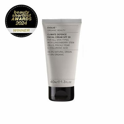 Vigtige egenskaber ved Evolve Climate Defence Facial Cream SPF 30.
