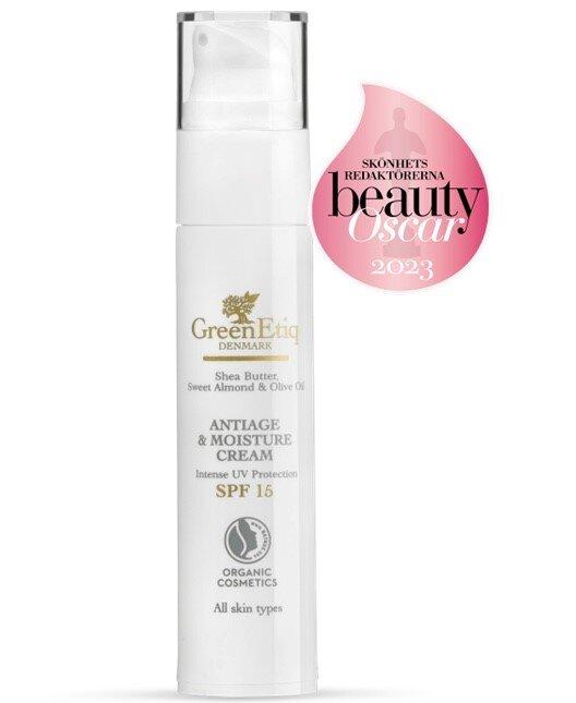 Greenetiq Antiage Moisture Cream Spf 15 50 Ml er en fremragende dagcreme. Der kombinerer fugt og beskyttelse i én formel. Denne creme er udviklet af GreenEtiq og er tilgængelig hos Duft og Natur under kategorien Personlig Pleje Greenetiq.