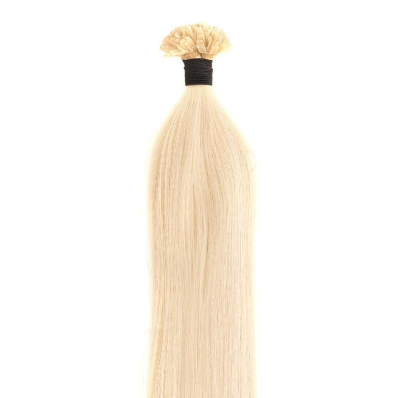 Hot Fusion Extensions Lys Blond 60A er et must-have for dem. Der ønsker, at tilføje længde og volumen til deres hår. Disse extensions er designet med nail tip/U tip keratin. Hvilket sikrer en holdbar og naturlig forbindelse til dit eget hår. Farven lys blond #60A passer perfekt til dig. Der har naturligt blond hår med gyldne undertoner.